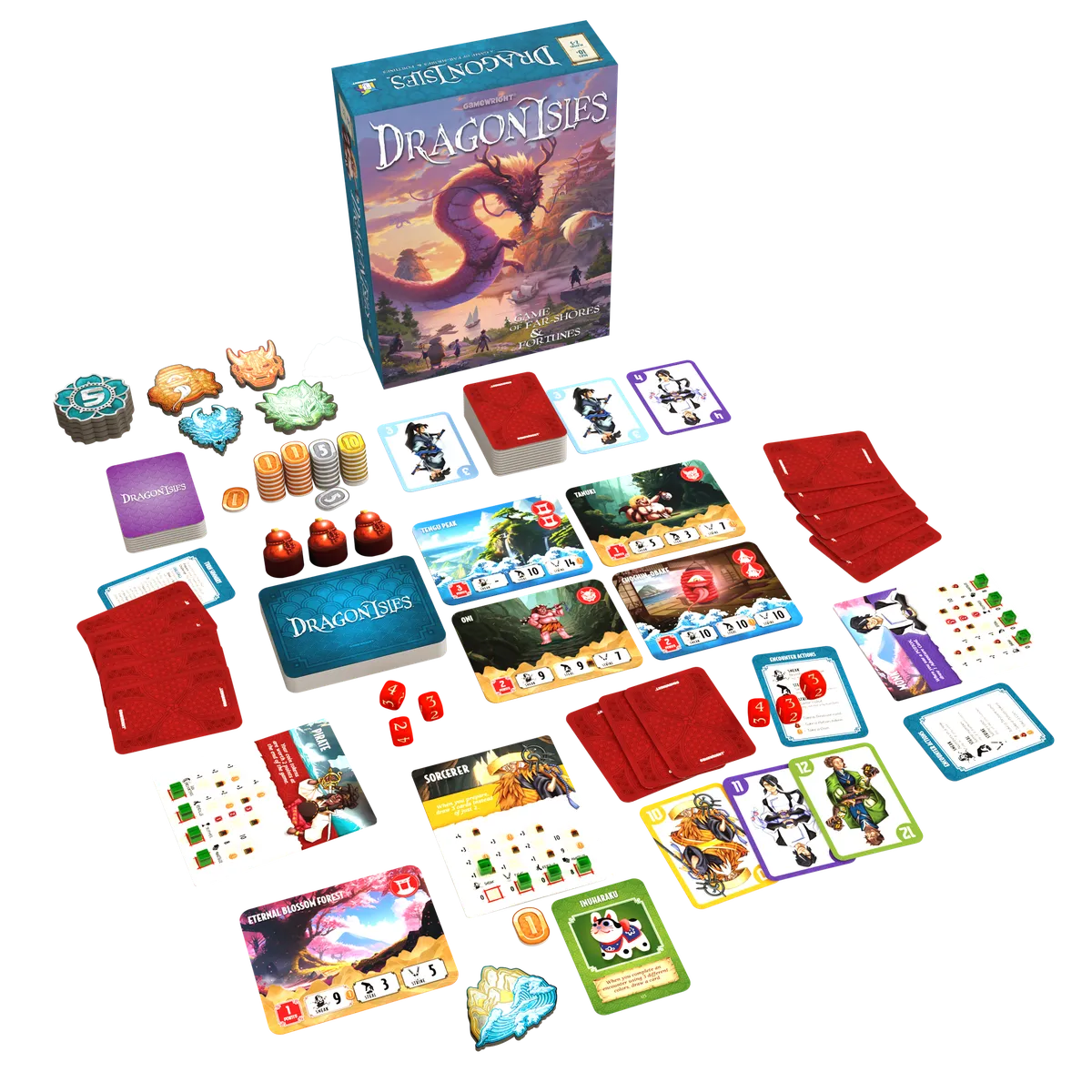 Welcome to the distant shores of the Dragon Isles. Step into the role of a lone adventurer, drawn to a land steeped in magic and mystery. Slip through shadoweed groves, outwit clever spirits, or strike with precision against powerful dragons - how you face each trial is yours to decide. with every foe you overcome, your strength grows. Unlock new abilties and refine your path, shaping your journey with skill and purpose. Will you clash with fearsome Oni, seek out masterfully crafted katana, and earn the most honor and victory points along the way. With 200+ cards, 50 coins, counters, dice.