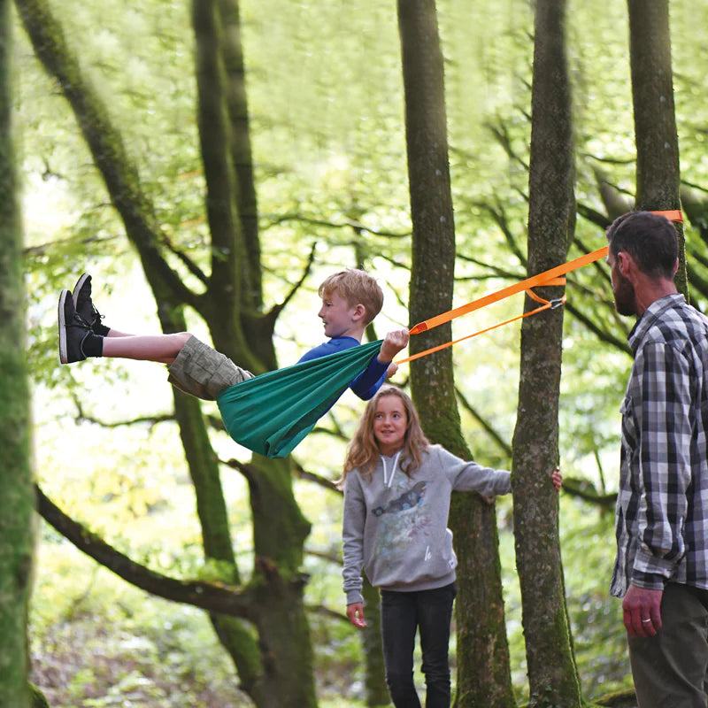 Relax when you’re out in nature with this fun portable swing set! Once set up between two strong trees, it provides a fun swing or a place for children to sit. Made from polyester recycled from an average of three PET bottles. Suitable for 5 years+.