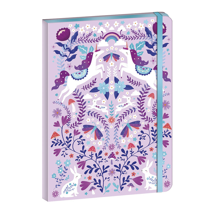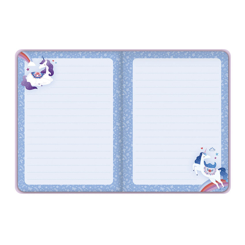 et imaginations run wild with the Dreamland Notebook - a magical diary perfect for children aged 6 and up. Whether it's for writing stories, secret thoughts, or big dreams, this 144-page lined notebook is designed to inspire creativity. Gilded metallic unicorn embellishments on the cover and shimmering blue-edged pages bring a touch of enchantment to every entry. A sparkly elastic band keeps everything safe and secure, while whimsical illustrations of unicorns and fantastic creatures await on every page. Encouraging self-expression, imagination, and creativity, this charming notebook is part of the Janod Art And Craft collection.