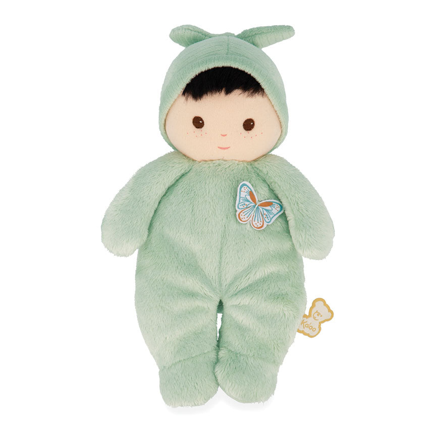 Baby Pilea is an adorable brown-haired doll with warm brown eyes and a soft green outfit, complete with a matching hat. Thoughtfully designed for cuddles and play, she features soft limbs that are easy for tiny hands to grasp, a plush lightly weighted body for extra comfort, and a butterfly-shaped tag to spark tactile exploration. Named after the Pilea plant that symbolises prosperity and good luck, she's a beautiful gift and a comforting first friend. Made from 90% recycled materials and machine washable at 30 degrees C, she's safe from birth and part of Kaloo's delightful Bebe range.