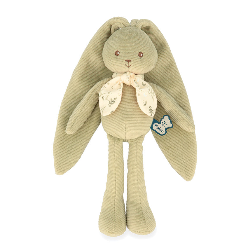 Presented in an FSC giftbox you can customise with a message, the Kaloo Lapinoo range is the perfect gift, whichever colour you choose! These chic little steel blue aqua green, rose pink, cream and bright ochre rabbits have beautiful long arms, legs and ears that are ideal hand holds for baby. The ears are also perfect to tie him on to your car seat, cot or pram, or even the handle bars of your bike when you're a bit older! Created from super soft corduroy, Blue Rabbit has a printed scarf to match his body and a Kaloo signature embroidered K on his foot. Give him a wash in the machine and pop him into the drier so he always looks his best and ready for an adventure or a bedtime cuddle.