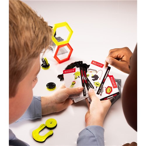 Mad, rad, magnetic action! This action-packed set features ramps, rebounders, rings, a tunnel, and a magnetic target - just about everything you need to build the most insane stunts. Set it up any way you want, then load one of the Mag-Pods into the shooter, pull it back with just your finger, aim, and launch. Ricocheting, rebounding, flipping, colliding, flying, tunnel-gliding, and more... Take on the 15 included challenges. Invent your own stunts. Combine with other Magshuto sets and incorporate your environment. The only limits are the laws of physics! Magshuto. Become a Trick Shot Master.