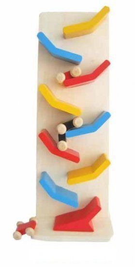Watch the little cars tumble down the vertical track over and over! Simple but fun game will have the kids amused for hours! Includes three wooden cars. Dimensions: 33 x 10cm Ages: 3+