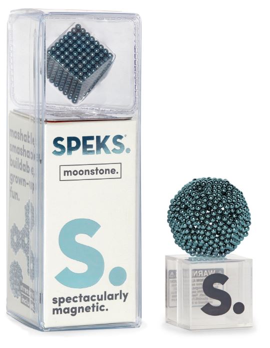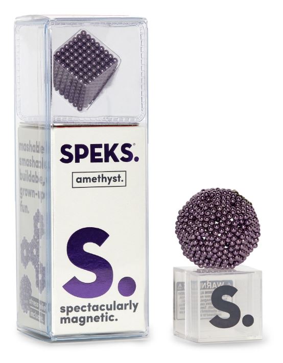 The original in mashable, smashable fun. Made from rare earth magnets in a rainbow of colours, Speks are quite possibly the best stress-relief desk toy around. Take ‘em wherever you like — they’re the perfect size for work or on-the-go. Luxe range includes: Amethyst, Moonstone, Gold, Gunmetal, Rose Gold and Silver. WARNING: Keep Away From All Children! Do not put near or in nose or mouth. Swallowed magnets can pinch and stick together across intestines causing serious injury or death. Seek immediate medical attention if magnets are swallowed or ingested.