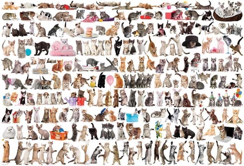 This 2000-Piece jigsaw puzzle features over 120 cat breeds, which makes for a very cute and endearing puzzle. Strong high-quality puzzle pieces. Made from recycled board and printed with vegetable based ink. This superior quality puzzle will delight and educate all at the same time.