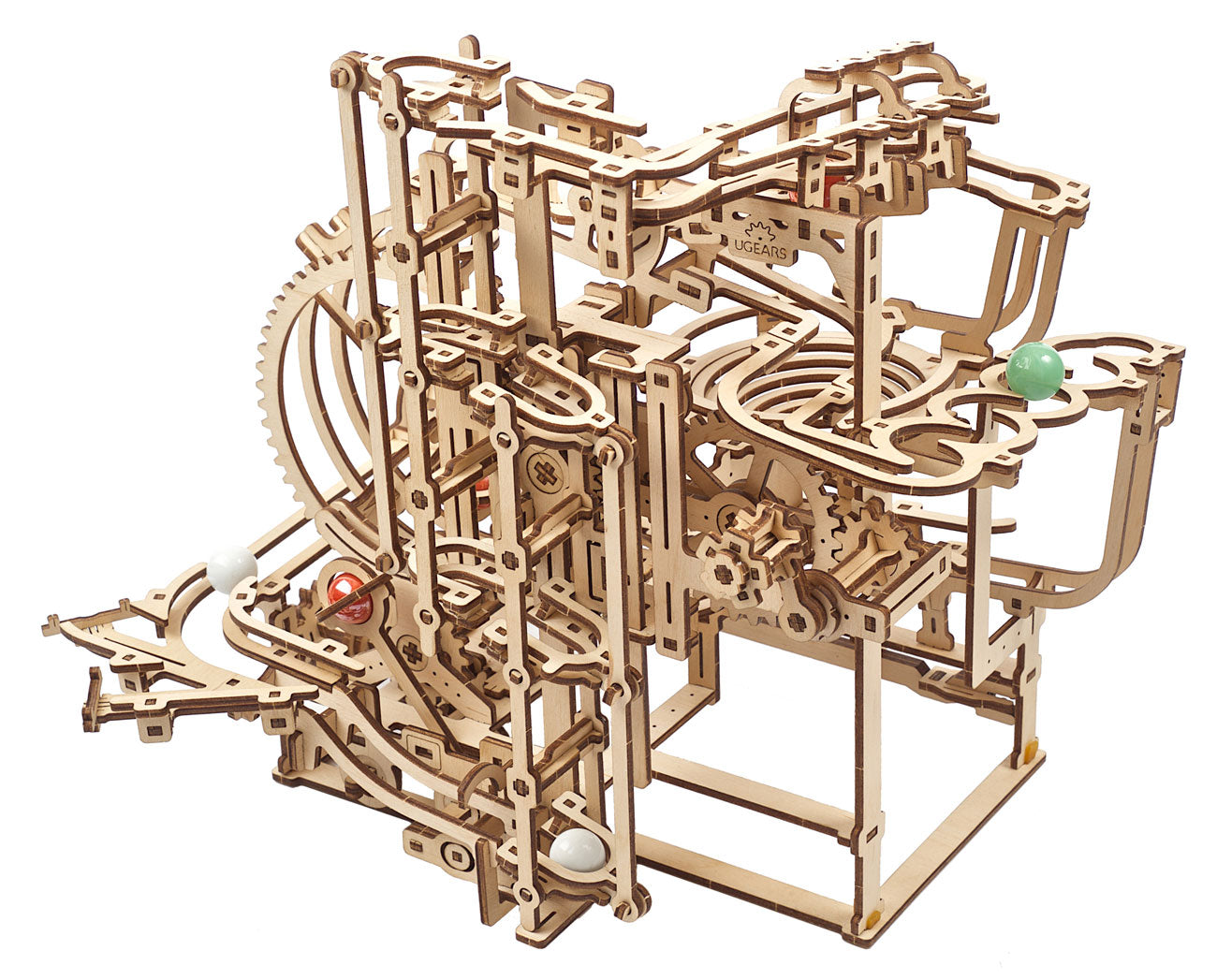 Experience the satisfaction of building your own intriguing, 3D puzzle / kinetic sculpture / marble run from Ugears. Everything you need for this fun DIY project comes right in the box, including pre-cut wooden boards, 10 marbles, plus wax and sandpaper (for optimal gear function).