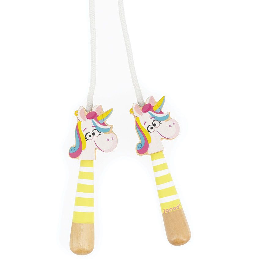 Add a sprinkle of magic to every skip with the quirky Unicorn Skipping Rope! Featuring colourful unicorn head handles and an adjustable 2 metre rope, it?s perfectly designed to adapt to every budding skipper.Whether indoors or outdoors, this skipping rope is the perfect tool to develop coordination and encourage healthy active play. Made from FSC certified wood, this brilliant toy is perfect for children 3 years and up.