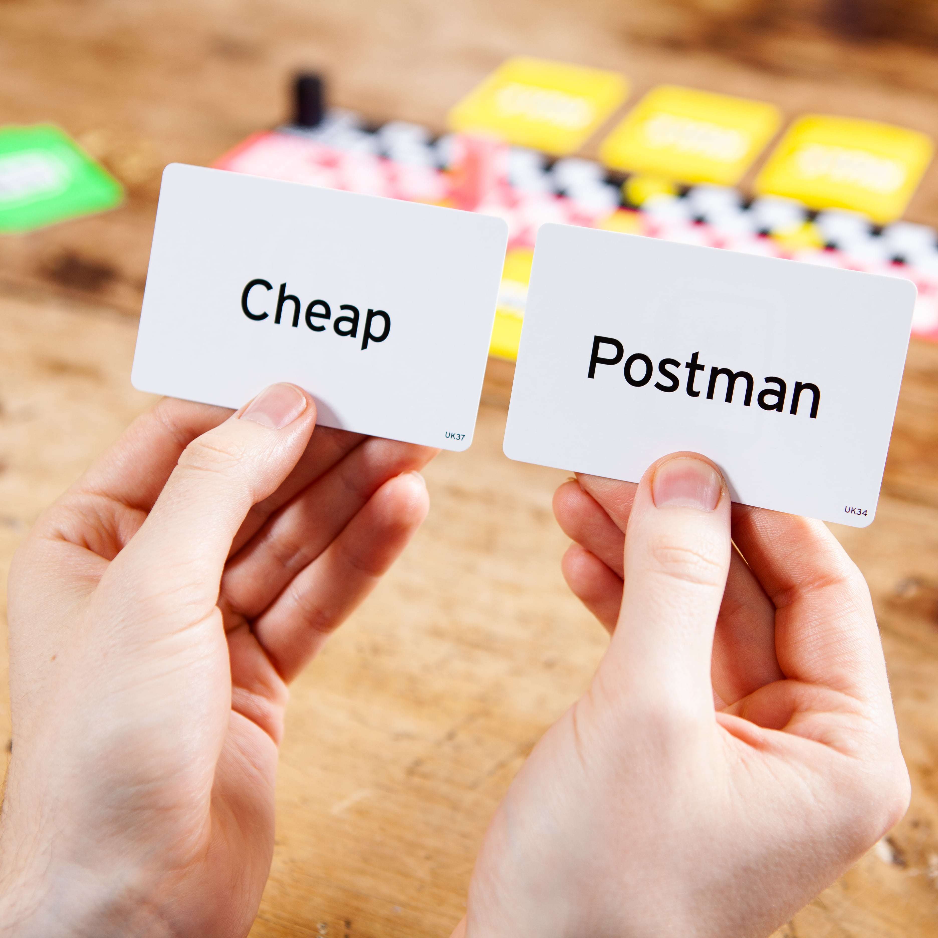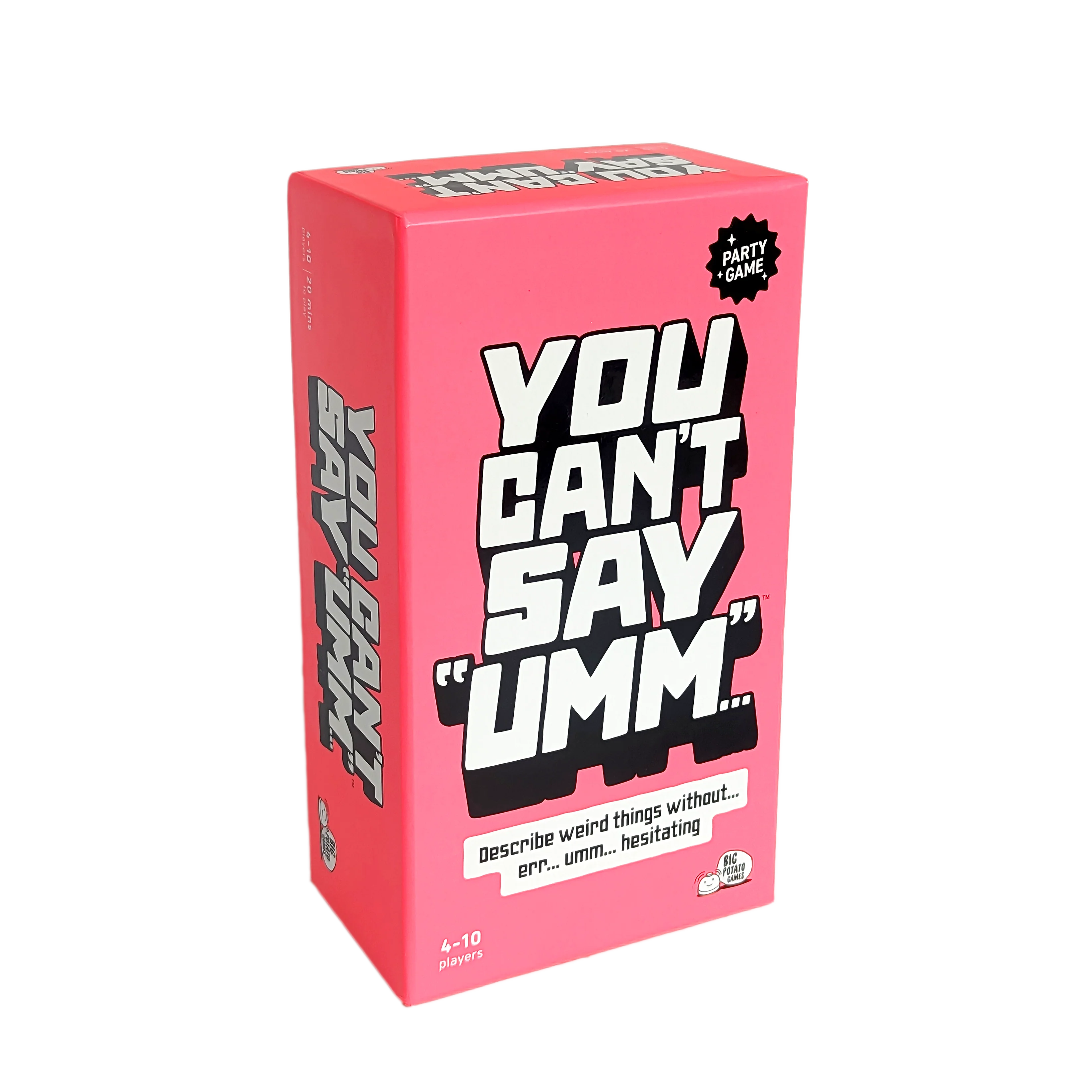 MADE FOR GAME NIGHTDing ding ding! The noisy bell, group celebrations and tongue-tied slip ups make this a hilarious party game for family and adults on game night.ALWAYS MIXING THINGS UPYou’re not just avoiding “umm”... this is a card game for adults and families that has loads of new challenges, like ‘change seats for every right answer’ and ‘do everything in a high-pitched voice’.